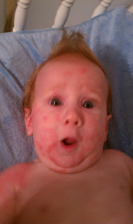 It was hard to get a picture of the rash on his legs because he doesn't stay still very well! :)